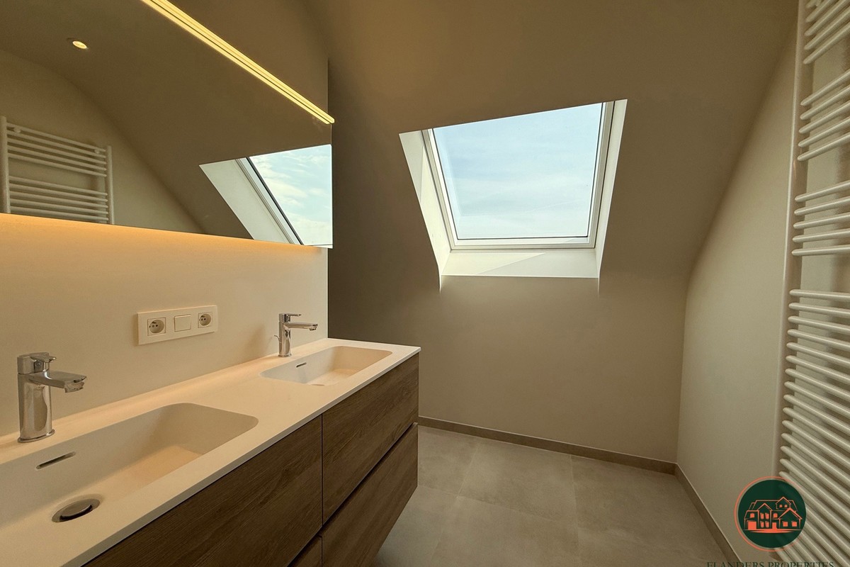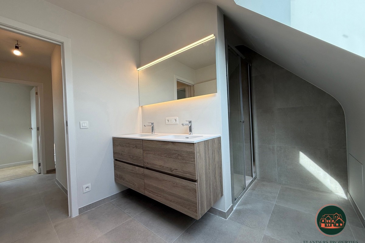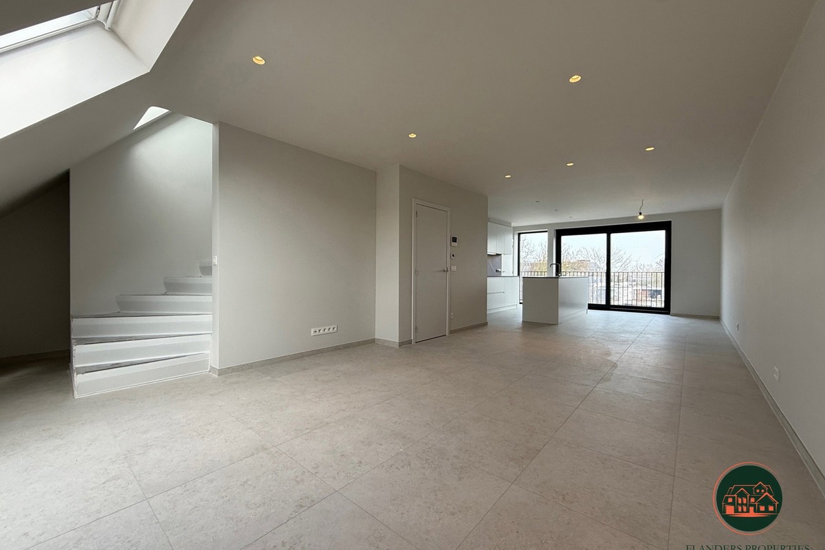 Instapklaar en energiezuinig duplex appartement te huur in de Residentie Sandolo, gelegen in de Noordstraat 43 te Maldegem, nabij het Sint-Annapark en het hartje centrum, waardoor winkels, scholen en voorzieningen op wandelafstand bereikbaar zijn. Dit modern appartement met een bewoonbare oppervlakte van ca. 105 m² bevindt zich op de derde en vierde verdieping en is volledig geschilderd. Via de inkomhal met vestiaireruimte en gastentoilet komt u in de lichtrijke leefruimte bestaande uit een ruime zithoek en eetplaats. De open, volledig ingerichte keuken met AEG-toestellen en centraal eiland sluit naadloos aan en geeft toegang tot het aangename terras. Verder is er een praktische berging met aansluiting voor wasmachine en droogkast. Op de verdieping bevindt zich de nachthal met apart toilet, twee volwaardige slaapkamers en een moderne badkamer met dubbele lavabo en inloopdouche. Het appartement is uiterst energiezuinig dankzij de warmtepomp met geothermie en zonnepanelen. Extra troeven zijn de autostaanplaats in een afgesloten domein en de fietsenberging. Huurprijs: €1.100/maand + €50 gemeenschappelijke kosten. Onmiddellijk beschikbaar.