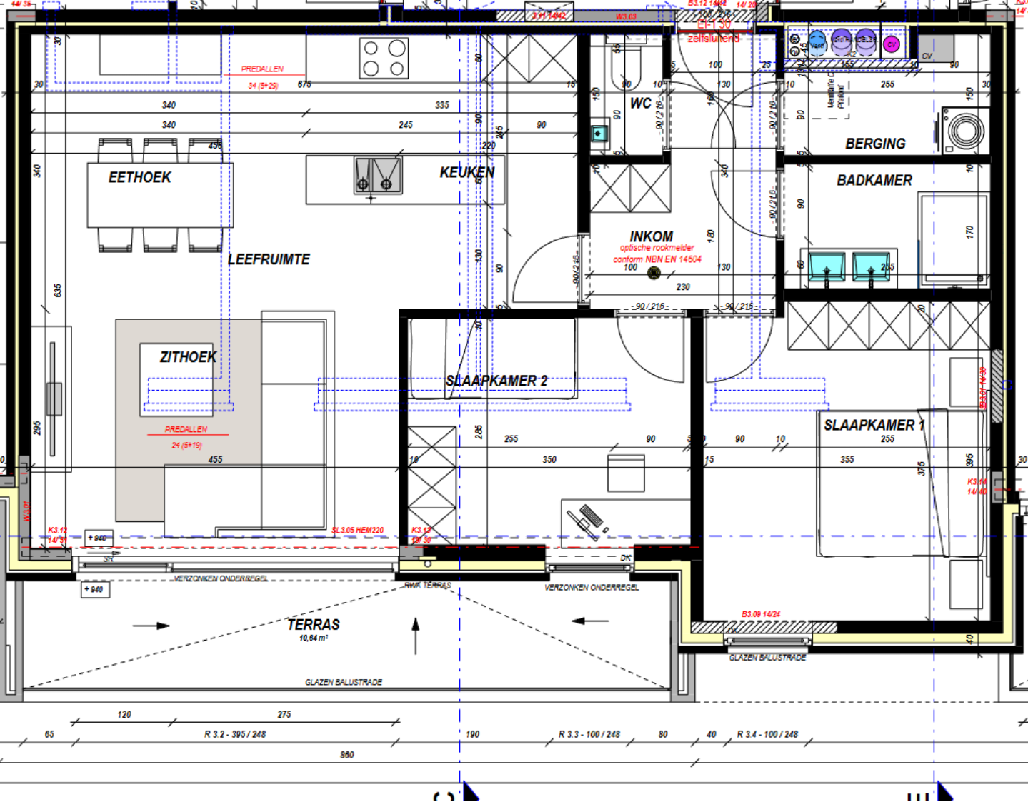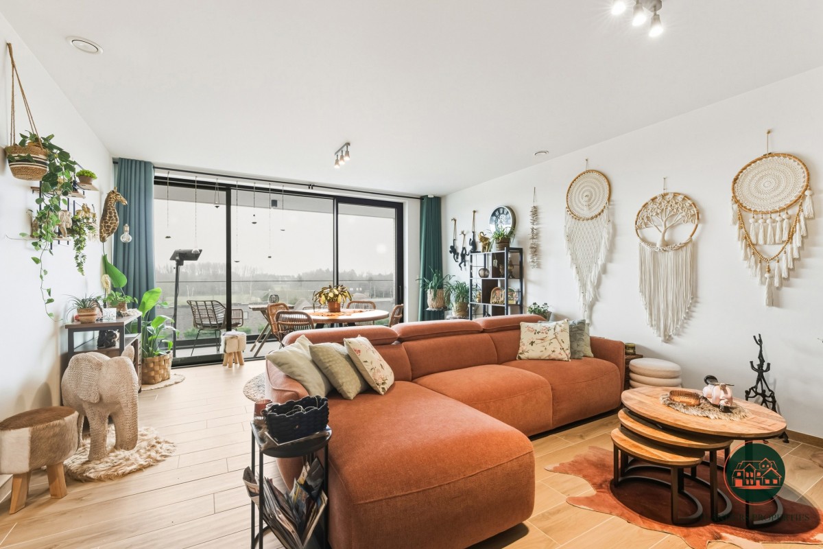Het appartement geniet van een zonovergoten, zuidgericht terras met een aangenaam open uitzicht. De luchtige leefruimte vloeit naadloos over in het terras, waardoor binnen en buiten harmonieus in elkaar overlopen en het hier heerlijk vertoeven is. Aansluitend bevindt zich de open, volledig geïnstalleerde keuken, die garant staat voor optimaal woon- en leefcomfort.