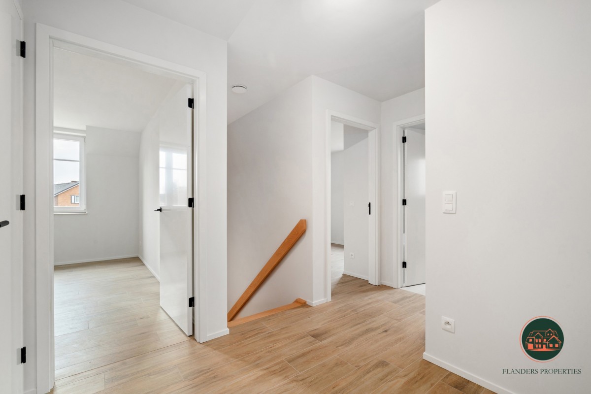 Ontdek deze volledig afgewerkte nieuwbouwwoning gelegen op percelen van 435 m² in een rustige en kwalitatieve woonomgeving. Deze hedendaagse woning combineert ruimte, comfort en energiezuinig wonen op een hoog afwerkingsniveau. De woning beschikt over een inpandige garage, 4 volwaardige slaapkamers en een lichtrijke leefruimte met open zicht op de tuin. De volledig geïnstalleerde keuken sluit naadloos aan op het terras en vormt het centrale hart van de woning. De badkamer is uitgerust met zowel een ligbad als een moderne inloopdouche. Bovendien biedt de zolderverdieping, bereikbaar via een vaste trap, de mogelijkheid om een vijfde ruime slaapkamer te creëren. Zowel op het gelijkvloers is een gastentoilet aanwezig als op de eerste verdieping een afzonderlijk toilet. De woningen zijn volledig afgewerkt en reeds geschilderd, inclusief aangelegde opritten, terrassen en tuinen, en zijn instapklaar tot in de laatste puntjes - U hoeft enkel nog te verhuizen. Technisch beantwoordt ze aan de hoogste hedendaagse normen met een geothermische warmtepomp, vloerverwarming, zonnepanelen en een regenwaterput van 10.000 liter, wat resulteert in een uitzonderlijk energiezuinig wooncomfort en lage verbruikskosten. Afgewerkt met duurzame en hedendaagse materialen vormen deze woningen een uitzonderlijk aanbod voor gezinnen of wie op zoek is naar een comfortabele en toekomstgerichte woonoplossing.