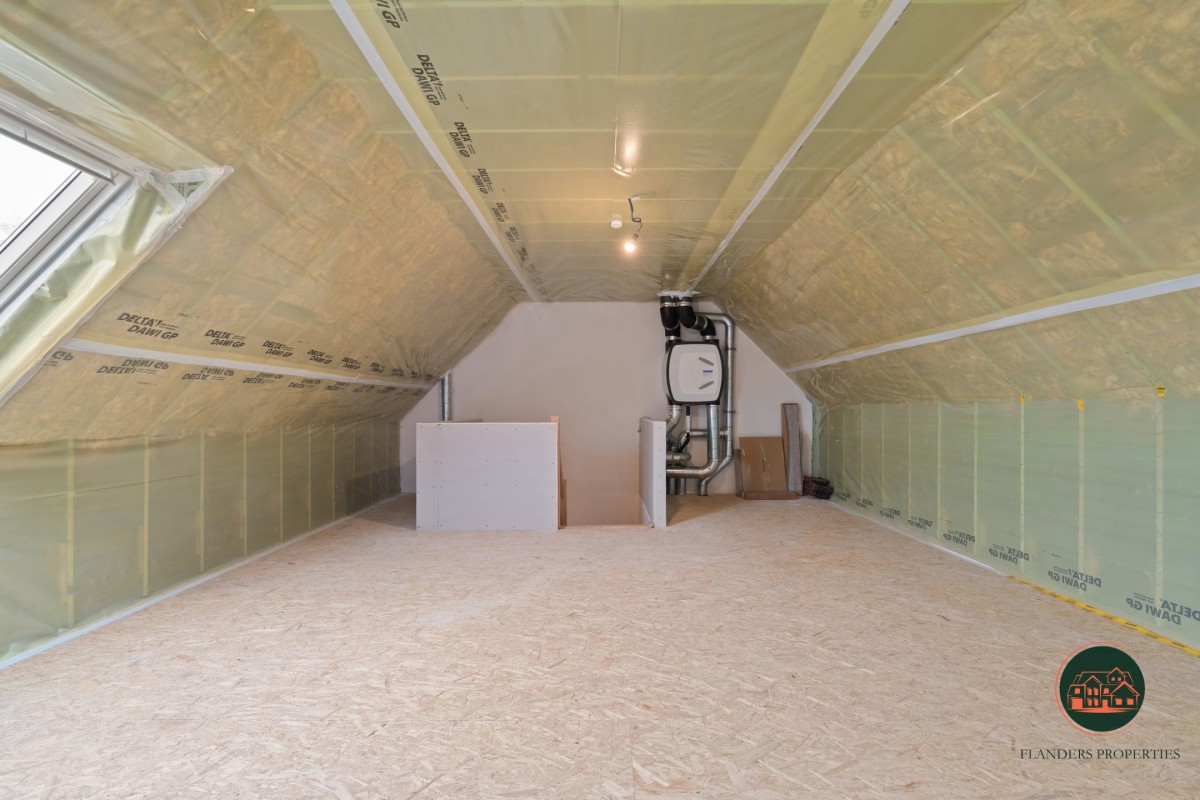 Ontdek deze volledig afgewerkte nieuwbouwwoning gelegen op percelen van 323 m² in een rustige en kwalitatieve woonomgeving. Deze hedendaagse woning combineert ruimte, comfort en energiezuinig wonen op een hoog afwerkingsniveau. De woning beschikt over een inpandige garage, 4 volwaardige slaapkamers en een lichtrijke leefruimte met open zicht op de tuin. De volledig geïnstalleerde keuken sluit naadloos aan op het terras en vormt het centrale hart van de woning. De badkamer is uitgerust met zowel een ligbad als een moderne inloopdouche. Bovendien biedt de zolderverdieping, bereikbaar via een vaste trap, de mogelijkheid om een vijfde ruime slaapkamer te creëren. Zowel op het gelijkvloers is een gastentoilet aanwezig als op de eerste verdieping een afzonderlijk toilet. De woningen zijn volledig afgewerkt en reeds geschilderd, inclusief aangelegde opritten, terrassen en tuinen, en zijn instapklaar tot in de laatste puntjes - U hoeft enkel nog te verhuizen. Technisch beantwoordt ze aan de hoogste hedendaagse normen met een geothermische warmtepomp, vloerverwarming, zonnepanelen en een regenwaterput van 10.000 liter, wat resulteert in een uitzonderlijk energiezuinig wooncomfort en lage verbruikskosten. Afgewerkt met duurzame en hedendaagse materialen vormen deze woningen een uitzonderlijk aanbod voor gezinnen of wie op zoek is naar een comfortabele en toekomstgerichte woonoplossing.
