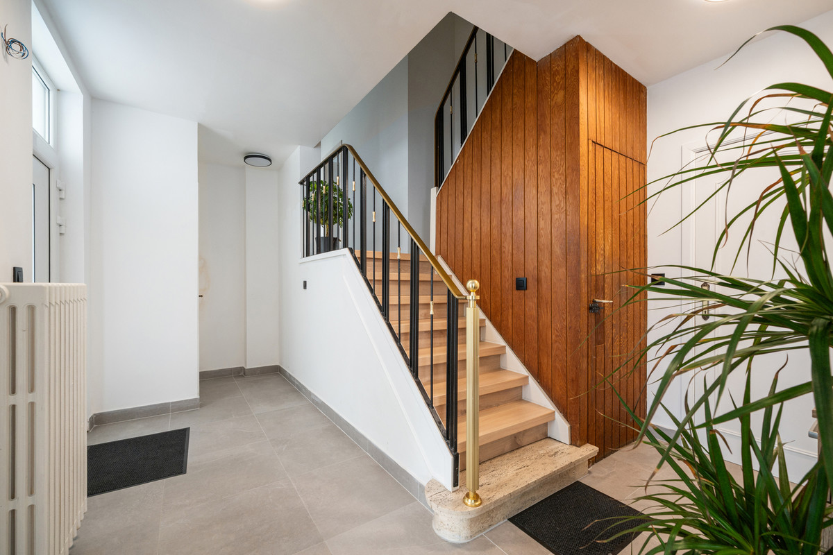 Op het gelijkvloers ontdekt u een lichtrijke leefruimte, een praktische keuken en een bureauruimte – ideaal voor thuiswerk of een eigen praktijk. Daarnaast zijn er 3 volwaardige slaapkamers en een badkamer aanwezig. Via de vaste trap naar de zolderverdieping kan u bovendien eenvoudig 2 extra kamers inrichten, wat deze woning perfect maakt voor een groter gezin of wie graag extra hobby- of werkruimte heeft.